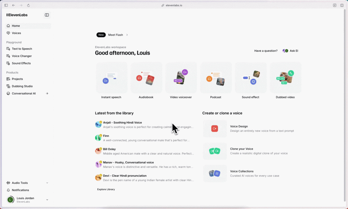 - Voice cloning — Upload a short sample and recreate any voice with impressive accuracy.